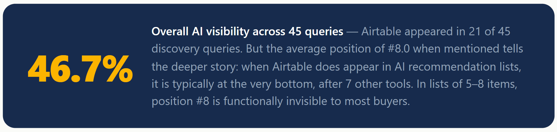 Position #8 means Airtable is present in AI answers — but absent from buyer decisions