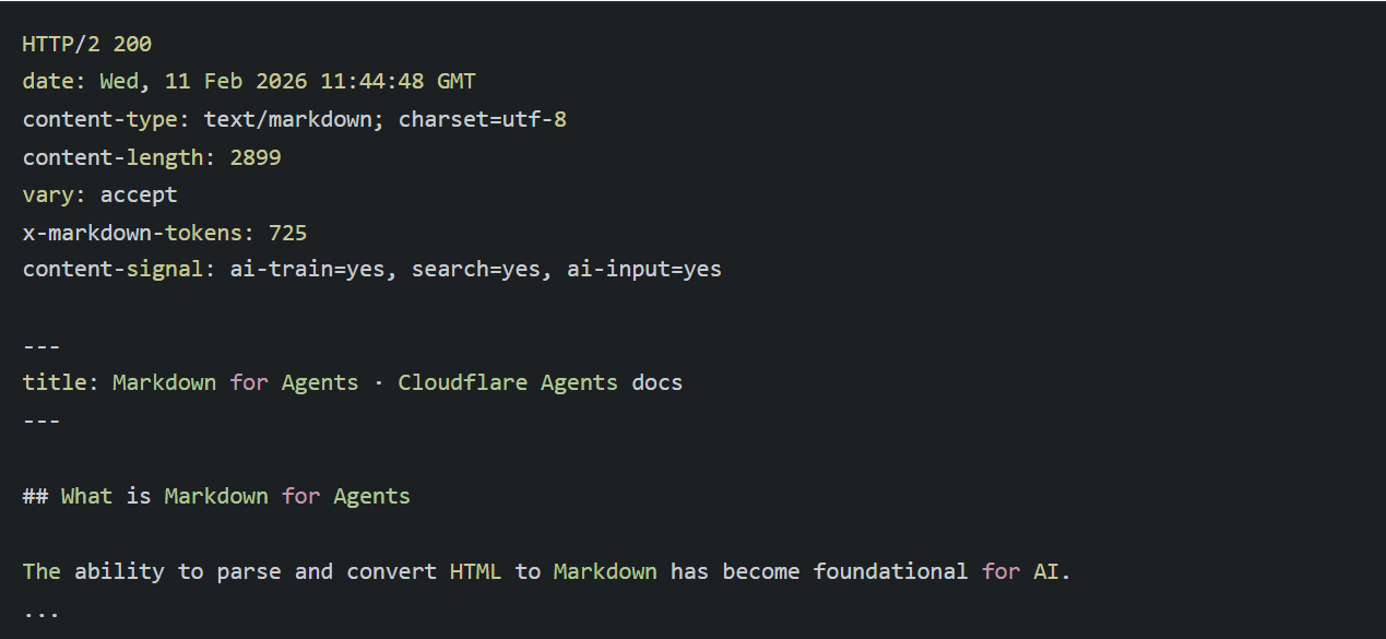 There's a second dimension here that most people will miss. Cloudflare's markdown responses include a Content-Signal header, signalling whether the content can be used for AI training, search indexing, or agentic input. This is part of a broader framework called Content Signals — early infrastructure for a future where content permissions are embedded in the delivery layer, not buried in terms of service that no crawler reads.